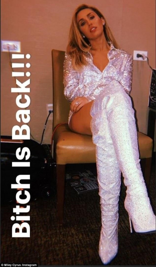 Ama Miley Cyrus, çok geçmeden eski vahşi günlerine geri döndü.Zaten fanlarının istediği kişiye bu şekilde tekrar bürünmüş oldu.