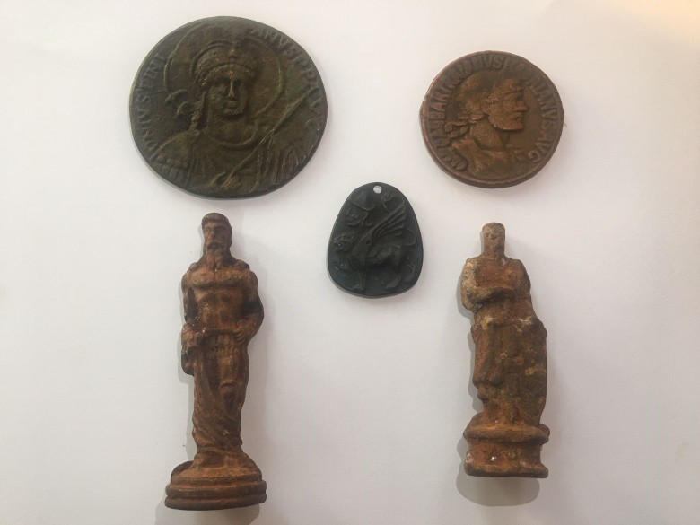 Yapılan aramada, Bizans dönemine ait olduğu değerlendirilen 2 adet sikke, 1 adet kolye ucu ve 2 adet insan figürlü heykelcik olmak üzere toplam 5 parça tarihi eser niteliğindeki malzeme ele geçirildi.