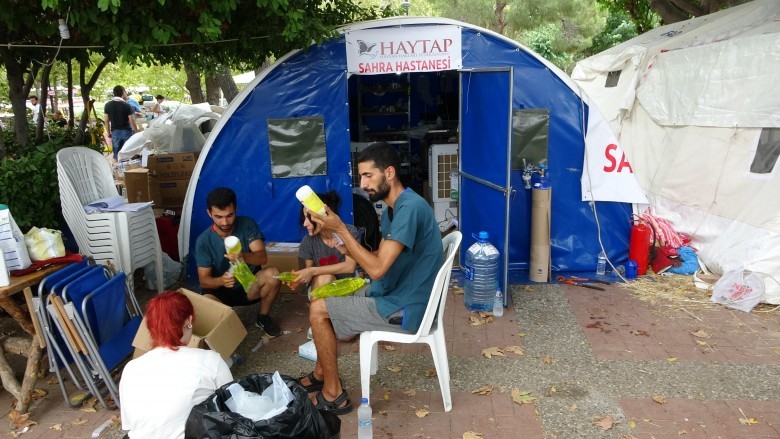 Çok fazla oranda hayvan tedavi ettiklerini belirten HAYTAP Hayvan Hakları Federasyonu İstanbul Saha sorumlusu Zuhal Arslan, “Burada, yangında yanan, zehirlenen hayvanların ilk müdahaleleri yapılıyor. İlk müdahaleleri yapıldıktan sonra bizim emeklilik hayvanları çiftliğimize de tedavileri devam edilmek üzere gönderiliyorlar. Burada gönüllü olarak birçok veteriner hekimi arkadaşımız çalışıyor. Türkiye’nin birçok yerinden geldiler. Aynı zamanda gönüllü arkadaşlarımızda geliyor buraya. Keşke bunlar yaşanmasaydı ama böyle bir afette nasıl bir kenetlenme olduğunu gördük. Dilerim bir daha böyle bir afet yaşanmaz. Çok ciddi bir dram yaşanıyor hayvanlar adına. Burada ped hayvanları, kediler, köpekler var. Yaban hayatından baykuş, kaplumbağa, güvercinler var. Keçiler, koyunlar, kuzular var. İnanılmaz oranda hayvan tedavi ettik. Hala tedavilerimiz devam ediyor ve yaralı hayvanlar geliyor” diye konuştu.