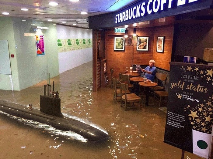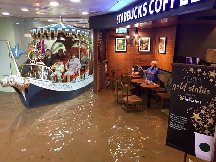Filipinler’i adeta yıkıp geçen Haima Tayfunu Hong Kong’a ulaştı. Pek çok binada su basmalarına yol açan tayfun oldukça ilginç bir görüntünün de ortaya çıkmasına neden oldu.