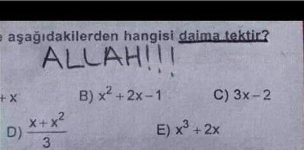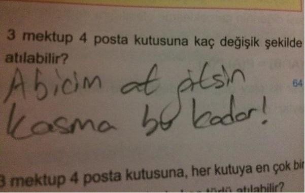 LİSTELER Öğrencilerin az da olsa not aldığı efsane eğlenceli cevapları merve Banlandı 7 yıl önce oluşturuldu. 3,196 okunma Sorunun cevabı akla gelmeyince onun yerine çok farklı cevaplar akla gelebiliyor ve bazı öğrencilerde cesaret edip sınav kağıdına bu cevapları yazabiliyor. Bunlardan bir kaç örnek... merve Takip et Bu İçeriğe Tepki Ver (en fazla 3 tepki) 2 Bayıldım 1 Çok İyi 0 Sıradan 0 Üzücü 0 Eğlendim 0 Komik 0 Anlamadım 0 Olamaz Comments Comment 0 comment Best Oldest Newest Write the first comment for this! Facebook Yorumları Disqus Yorumları