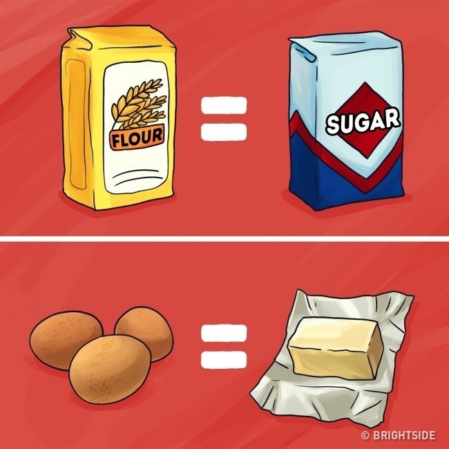 - Tatlı hamur işleri için hamurun sırrı basittir: un ağırlığı şeker ağırlığına eşit olmalı ve yumurtanın ağırlığı tereyağının ağırlığına eşit olmalıdır.