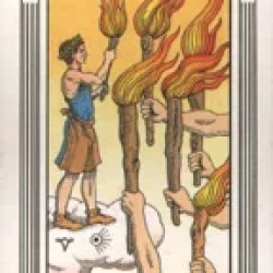 Başarı ve verilen savaşın zafer ile kazanılacağını ifade eder. Niyetlinin uğruna fazla uğraşlar verdiği bir konuda ilerleme göstereceği daha yüksek konumlara geleceğini anlatır. Niyetlinin azmi ve güçlü duruşu bu kartla ortaya çıkar.